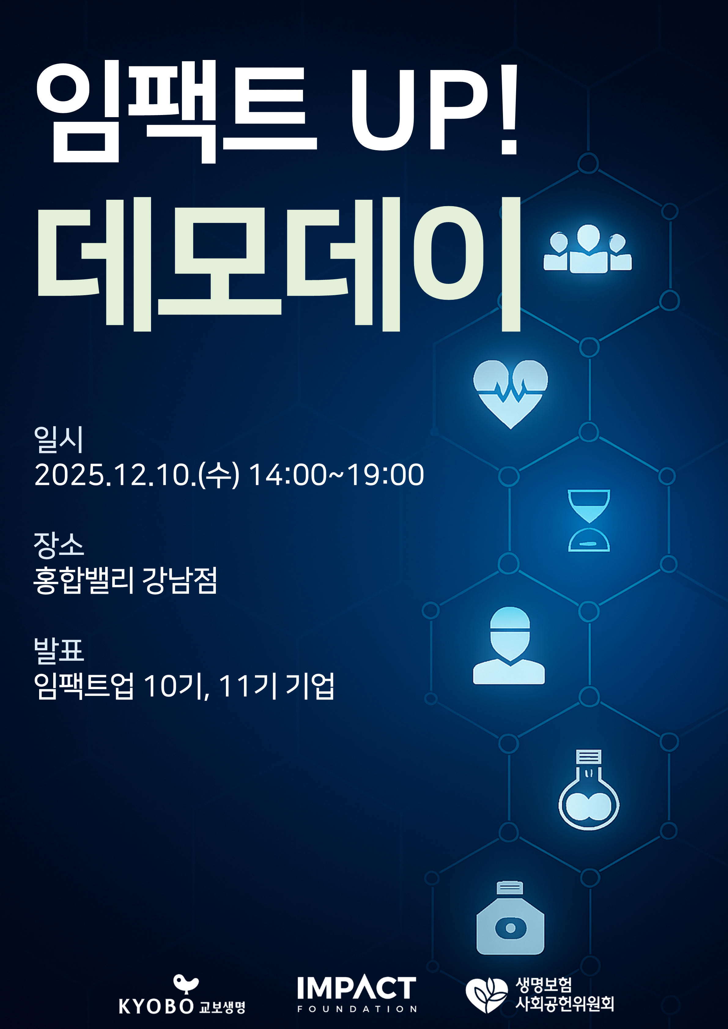 2025년 임팩트UP 사업을 빛낸 10기, 11기 총 14개 기업의 최종 데모데이, '2025 IMPACT NIGHT'을 개최합니다! 🎉