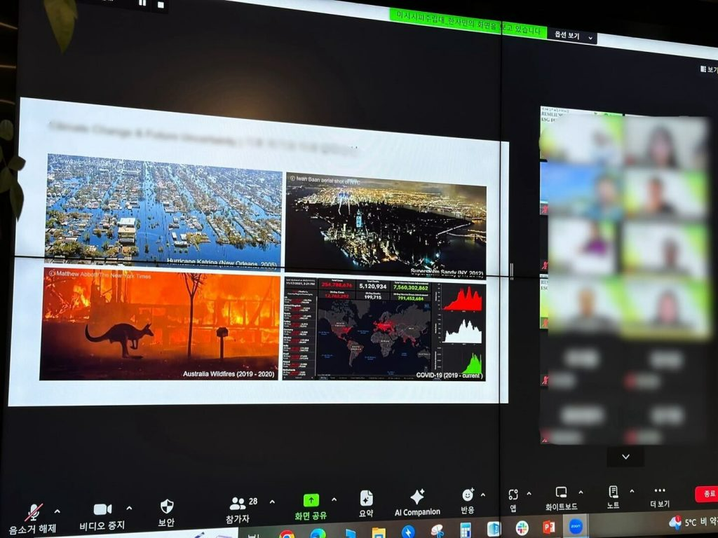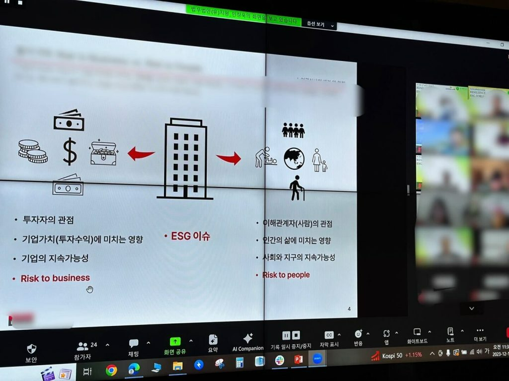 뿐만 아니라 ESG 관련 사전질문을 중심으로 ESG분야별 전문가분들과 함께 질의응답을 하였고, 각 대륙의 ESG 사례를 살펴보며 궁금증을 해소하는 시간을 가졌습니다.