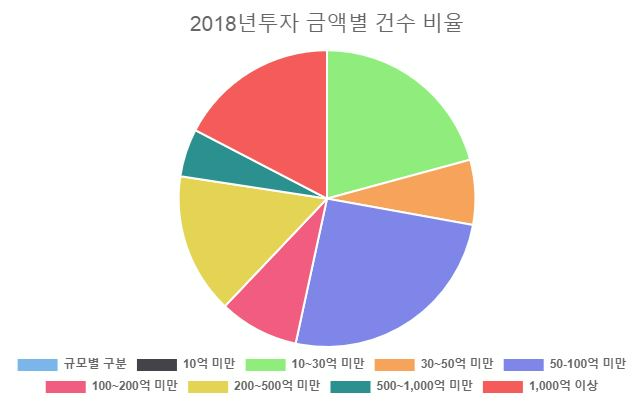 ◇ 418건, 4조 9,150억 투자 이뤄져=2018년에 이뤄진 투자 건수는 모두 418건이며 투자 유치 금액은 4조 9,150억 6,000만 원인 것으로 나타났다.