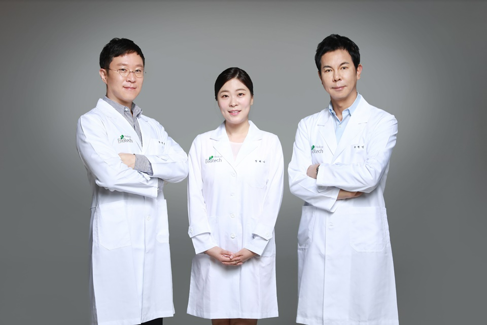 (좌측부터) 메디코스바이오텍 류희중 고문, 정해나 연구소장, 유원민 대표