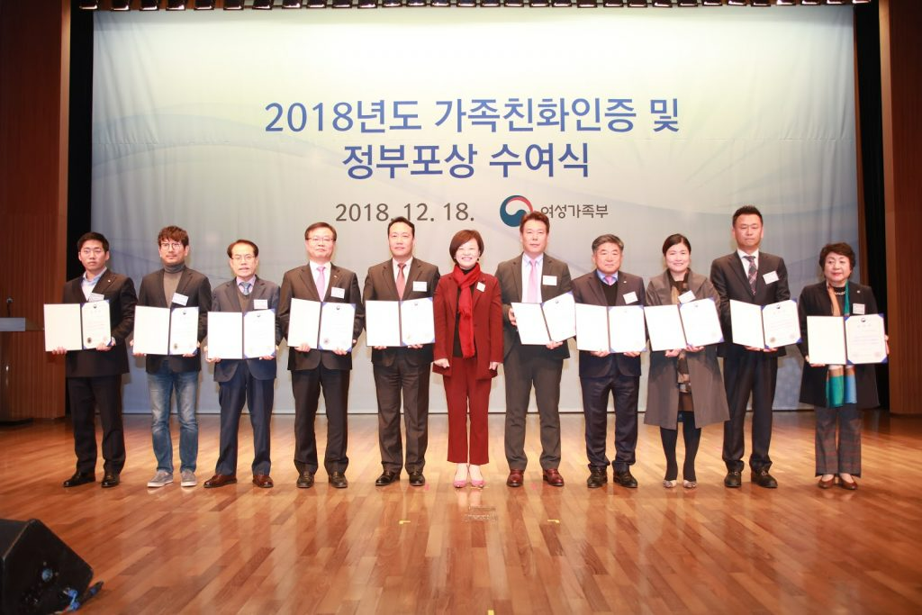 ‘가족친화 우수기업’은 저출산ㆍ고령화, 여성의 경제활동 참여 증가 등 사회 환경의 변화에 따라 근로자가 가정생활과 직장생활을 조화롭게 병행할 수 있는 사회를 조성하기 위한 취지로 만든 제도로써 모범적인 조직 문화를 운영하는 기업에 대해 심사를 거친 후 선발된 기업을 포상한다.